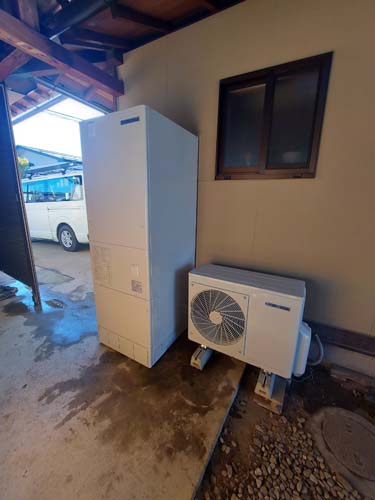 日野町 コロナ自然冷媒CO2家庭用ヒートポンプ給湯機貯湯ユニットCTU-37AZ1K、ヒートポンプユニットCHP-DZ451K エコキュート交換工事