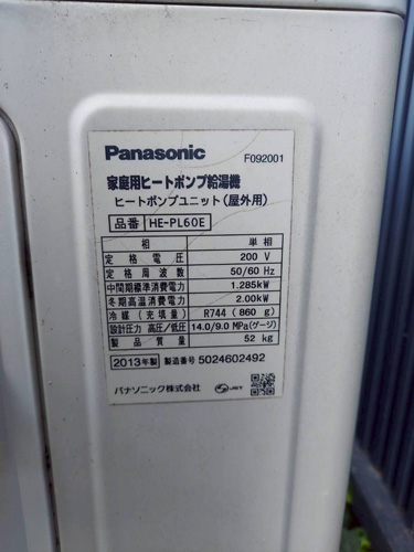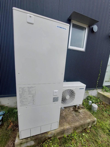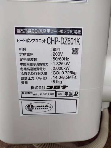 米子市皆生新田 パナソニック家庭用ヒートポンプ給湯機ヒートポンプユニット(屋外用)HE-PL60E→コロナ自然冷媒CO2家庭用ヒートポンプ給湯機ヒートポンプユニットCHP-DZ601K、貯湯ユニットCTU-46AZ1K エコキュート交換工事